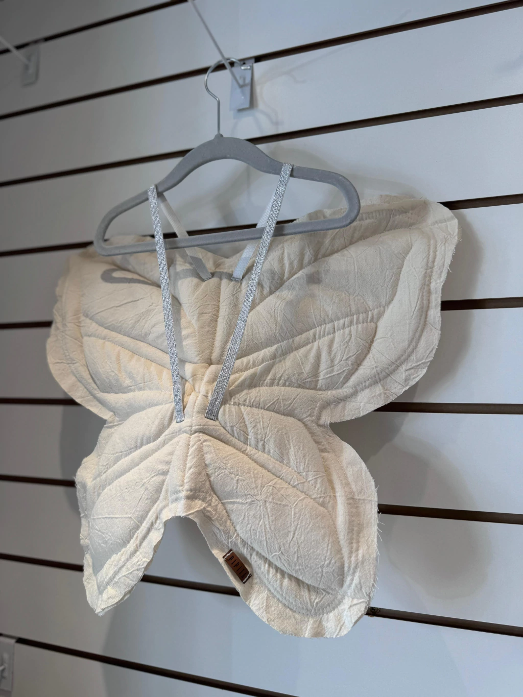 Tiernas y hermosas alas de mariposa para que los chicos jueguen, se disfracen y se diviertan. Confeccionadas en tusor y rellanas con guata, lo que las hace súper livianas.