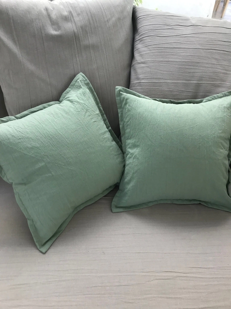 Almohadón con funda confeccionada en tusor y relleno de vellón siliconado.