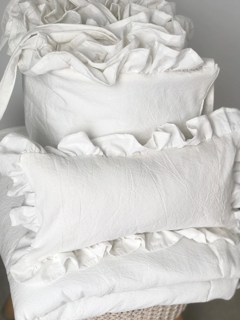 Incluye: Acolchado + Chichonera volados + Almohadón volados + Juego de sábanas