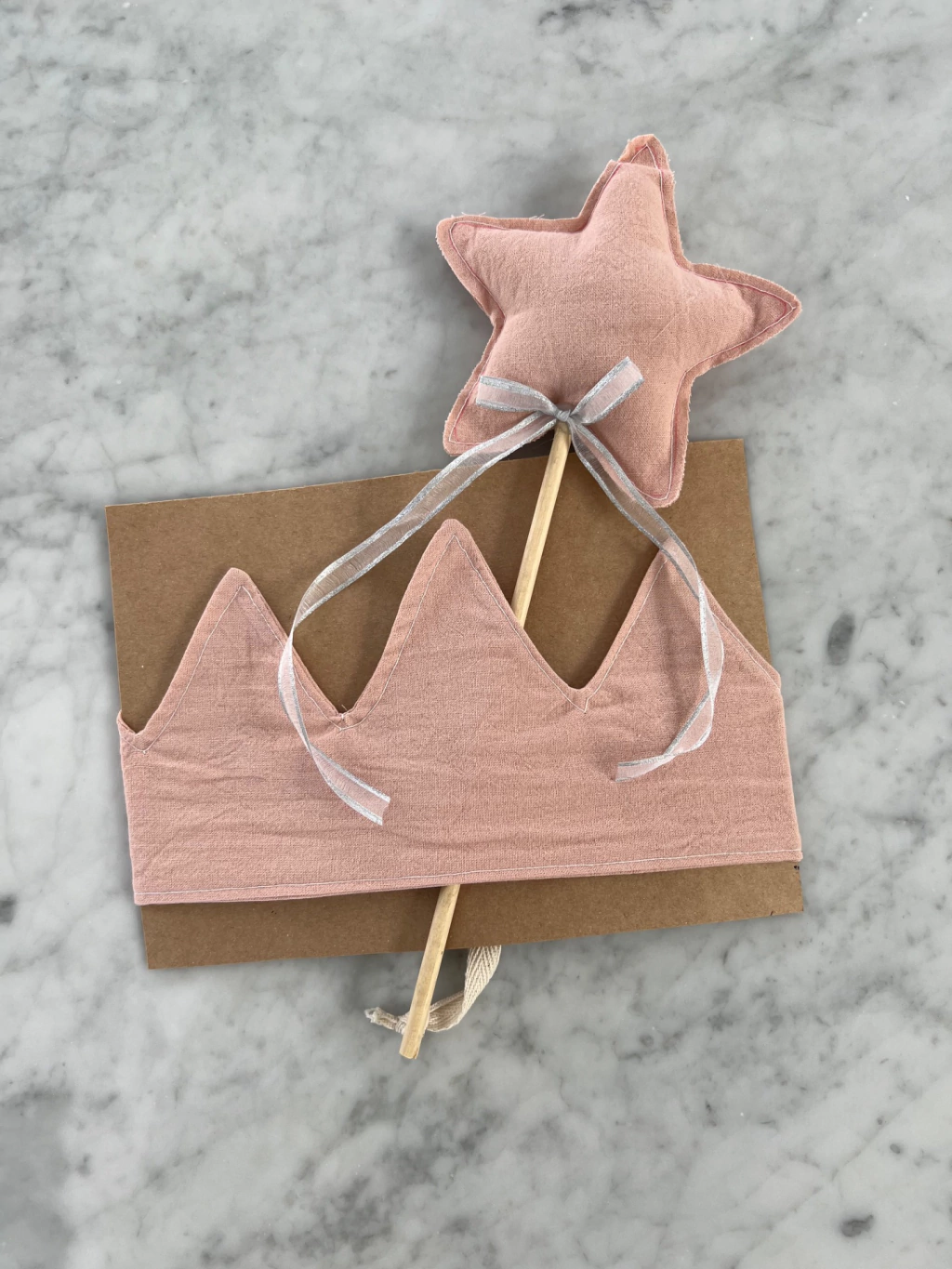 Regalo para princesas! Corona y varita mágica confeccionada en tusor 100% algodón, reversible.